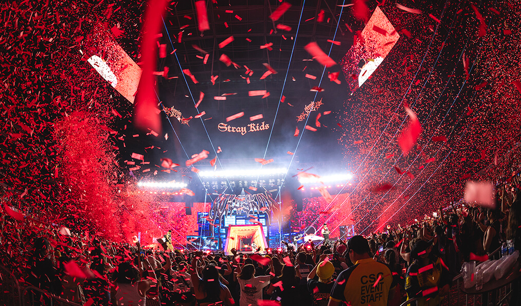 映画の核となるのは、アメリカ・ロサンゼルスの巨大会場 SoFiスタジアムで開催された歴史的な公演。その熱狂的なステージを、アデルやテイラー・スウィフトなど世界的なアーティストたちのライブ映像を手掛けてきたポール・ダグデール監督らが制作を指揮し、最新のカメラワークと音響で余すところなく撮影。そして、ライブ映画に留まらず、ツアーの舞台裏に密着したメイキングや、メンバーたちが抱く葛藤と情熱を語った独占インタビューも盛り込まれており、メンバーたちは、忙しいツアースケジュールを乗り越えながら、ステージ上の圧倒的なパフォーマンスから、バックステージでの飾らない素顔まで、Stray Kidsのアイデンティティが形成される瞬間を克明に映し出す。